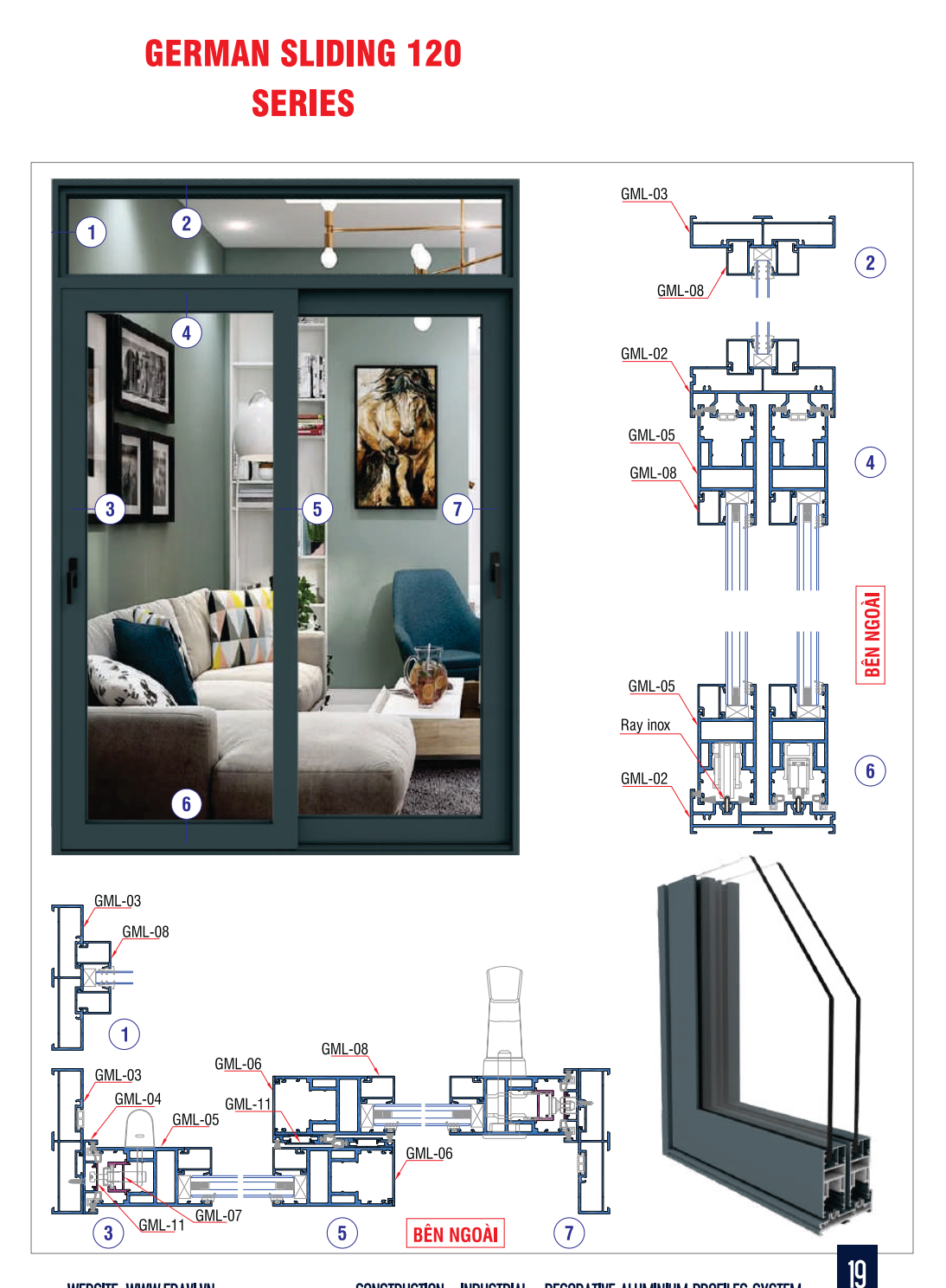 - Hệ cửa lùa 120 được thiết kế mang phong cách Châu Âu với bản cánh lớn 120mm, sử dụng cho những bộ cửa có kích thước lớn.