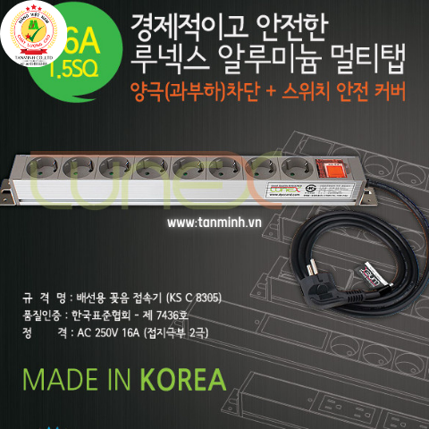 Ổ cắm điện Lunex 8 lỗ Hàn Quốc